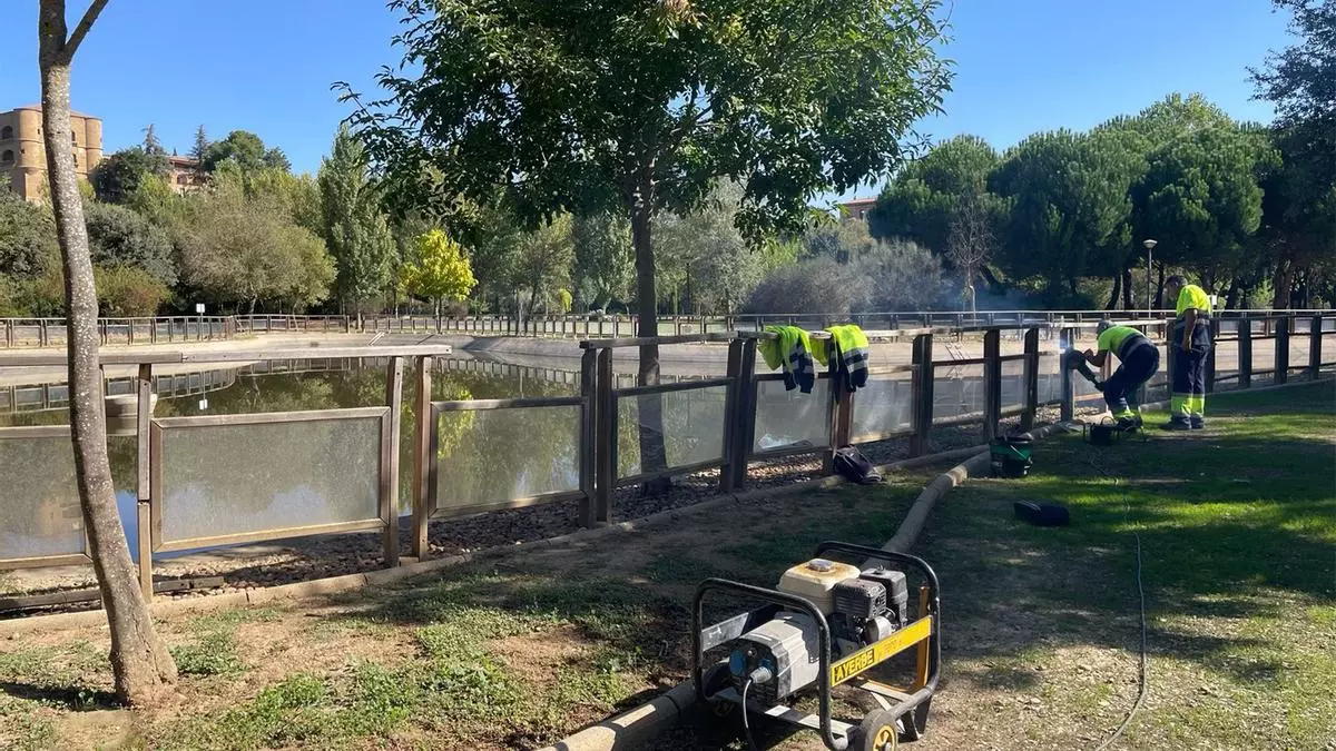 Los vándalos han vuelto a cebarse con el vallado perimetral del estanque del Prado de las Pavas, rompiendo cristales y pasamanos, según ha informado la Policía Local. La estructura ha sufrido la rotura de nueve cristales y tres pasamanos de madera.
