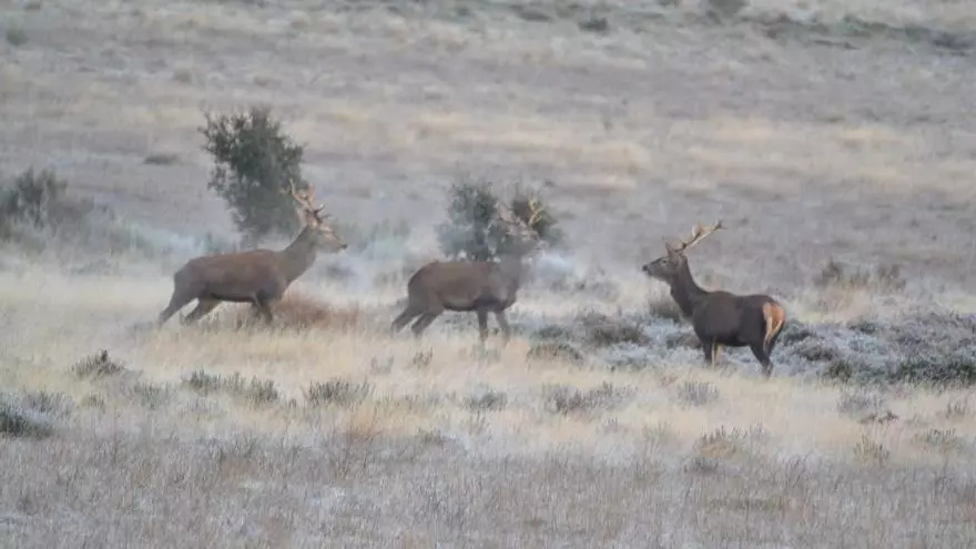 Tres ciervos en la Reserva de Caza Sierra de la Culebra / Araceli Saavedra
