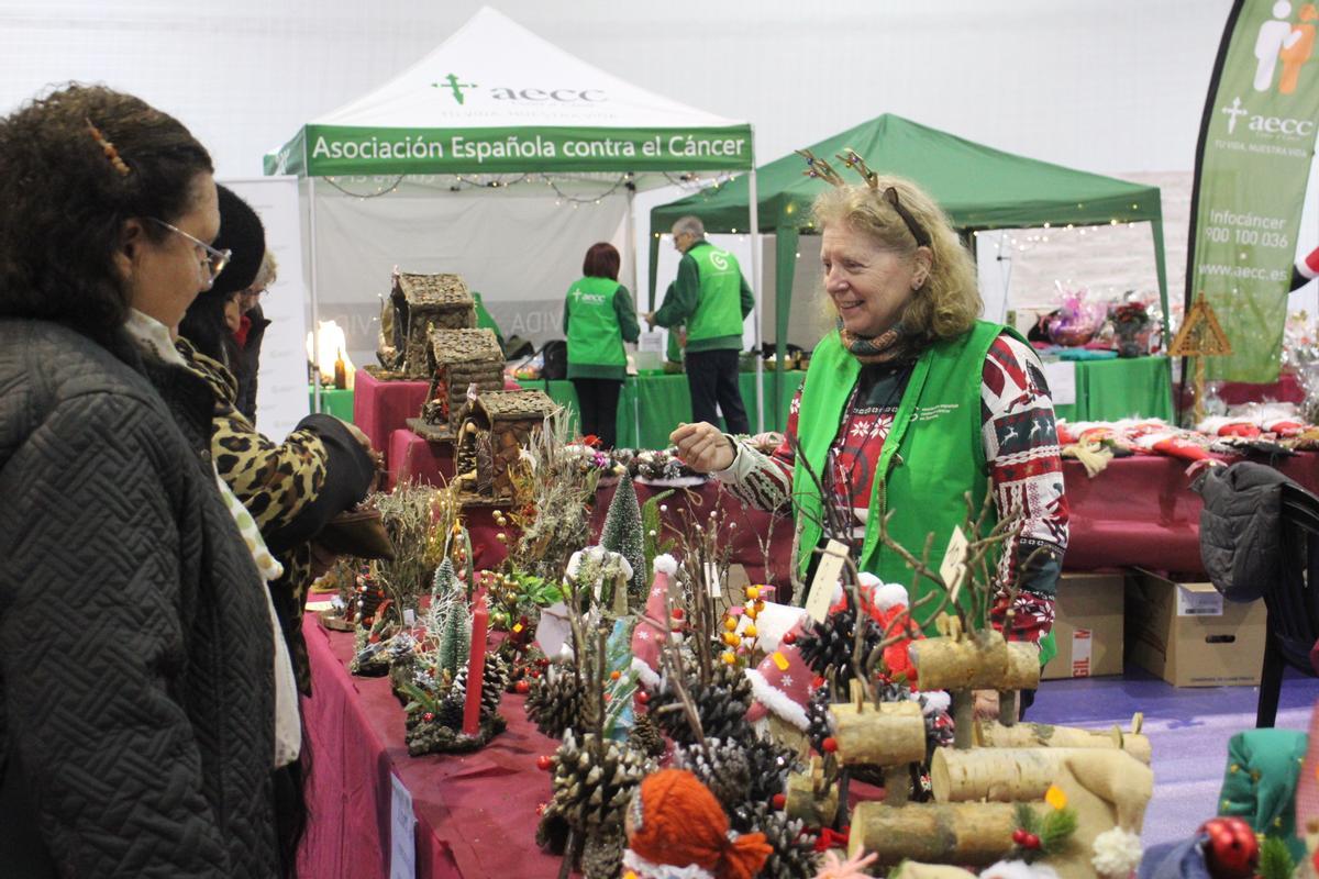 Voluntarios y socios de la agrupación local de la Asociación Española Contra el Cáncer inauguraron la VII edición del Mercadillo de Navidad instalado en el pabellón deportivo José Varela de Puebla de Sanabria.