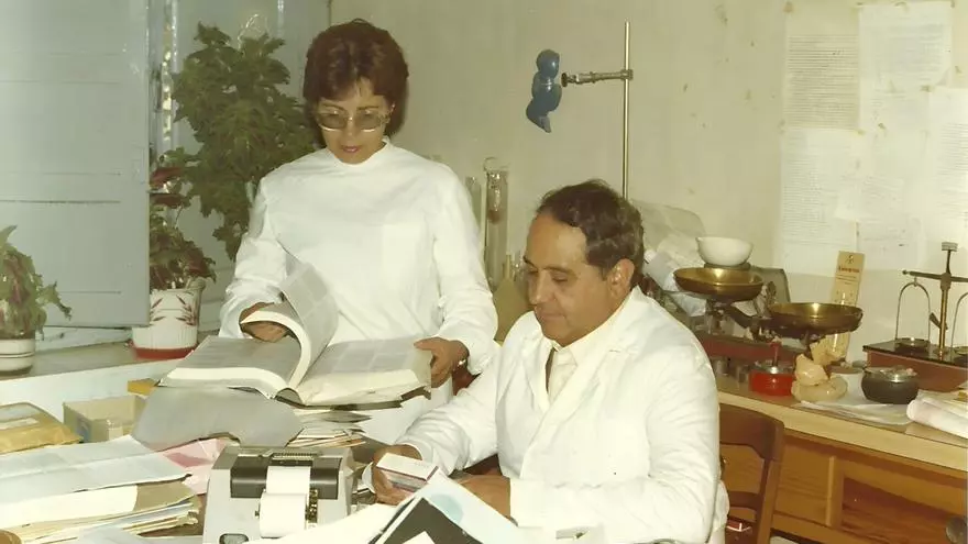 Fotografía retrospectiva de Adoración y José en la farmacia | CEDIDA A CH. S.